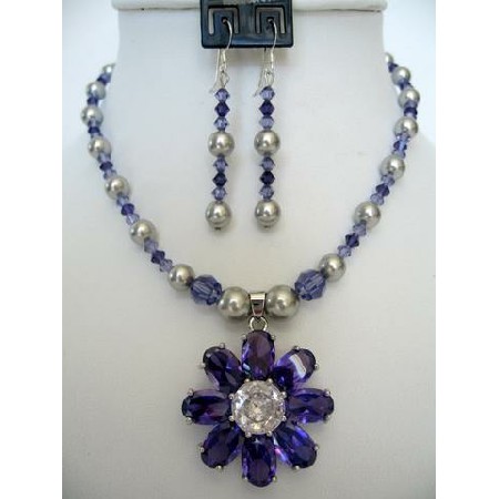 Material Used : Gleaming Grey Pearlsand Tanzanite with Violet Crystals beads in different sizes & a beautiful flower Pendant in Violet Crystals this is handcrafted with 7mm & 9mm Grey Pearls 8mm round Tanzanite Crystals4mm bicone Tanzanite & Violet Crystals beads accented in beautiful Necklace. The Earrings Features Sterling Silver 92.5 French Wire with Pearls & Crystals matching to Necklace absolutely smashing. Necklace has confetti Pendant with Violet Crystals Pendant with russian diamond(like CZ) in the middle gives a stunning & loving look. This gorgeous & lustrous piece you are looking is made from the highest quality material & crafted by professional Handmade. Perfect to give your love one or for yourself